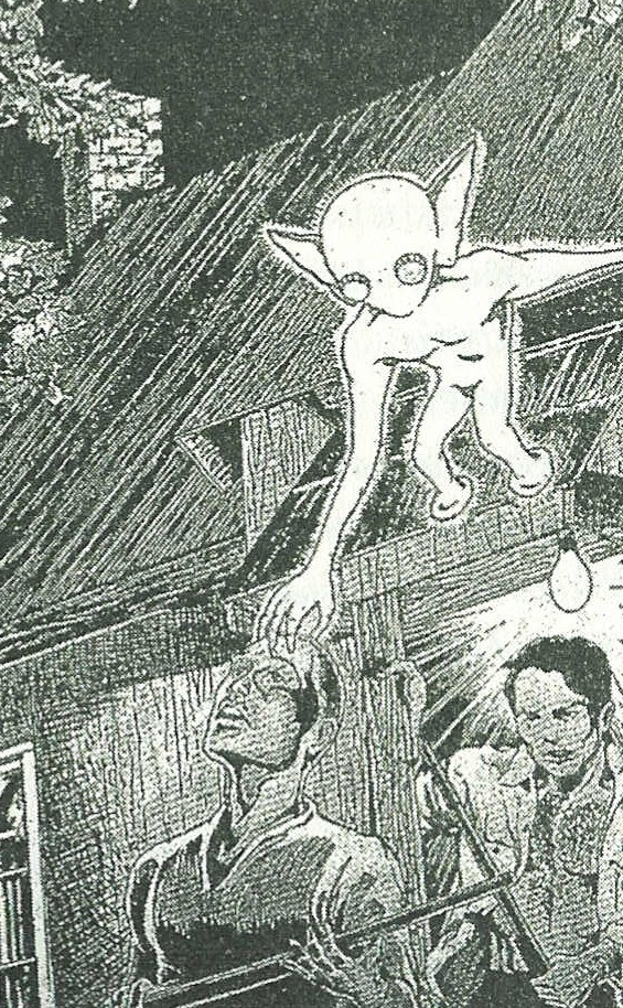 And, of course, most mundanely of all this astoundingly non-mundane stuff: what does all this mean for the "muddied middle" of the pile of ET-Air Force-style UFOs and the pile of the magical glen dancing world of brightly clothed Faerie? The illustration above is for a recent case taken place near a Native American settlement in northern Quebec. ET? or Faerie? Let it be a non-humble man who thinks he clearly can decide.
